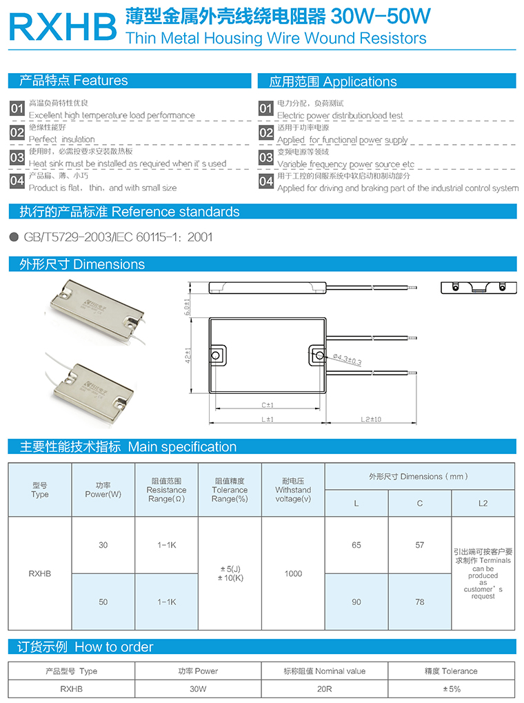 RXHB薄型金属外壳线绕电阻器