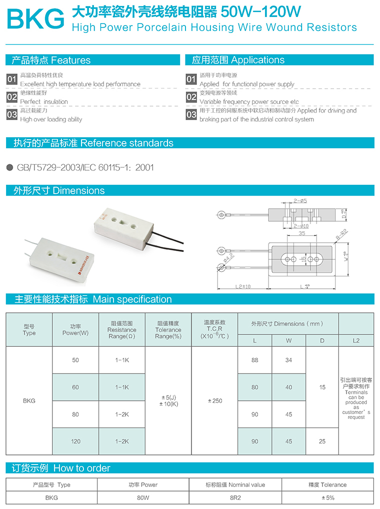 BKG型大功率瓷外壳线绕电阻器