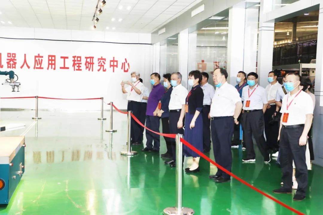 调研组认真听取企业生产经营、科技创新、转型升级等情况介绍,详细了解今年以来企业应对疫情冲击、推动复工复产的举措和取得的成效。在宝威(中国)一站式服务平台电气,调研组步入公司现代化的厂房,详细了解了钣金柔性智造系统、智能柜体装配生产线、智能机器人折弯工作站等的生产及研发情况。在机器人应用工程研究中心,调研组驻足细看,对宝威(中国)一站式服务平台的技术实力给予了充分肯定。