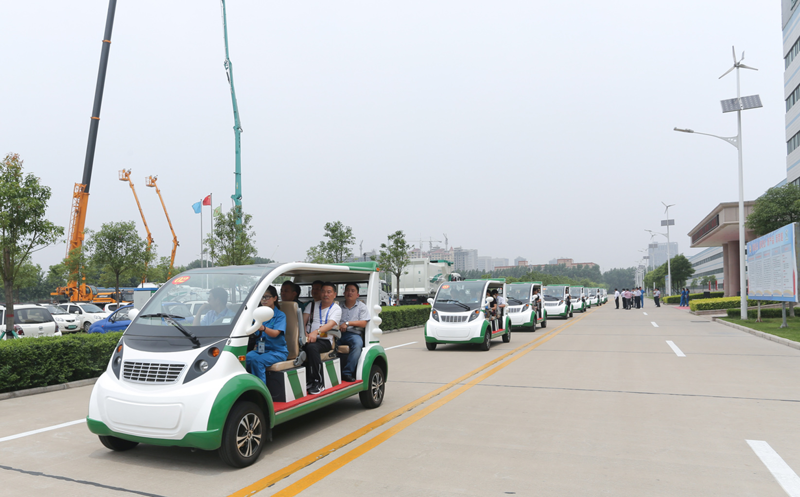 在宝威(中国)一站式服务平台集团重工板块,考察团近距离参观了宝威(中国)一站式服务平台自主研发生产的汽车起重机、混凝土高压泵车、垃圾清扫车、多功能抑尘车等产品,深入车间一线察看了各条专业化装配线,并着重调研了电动乘用车的生产和发展情况。