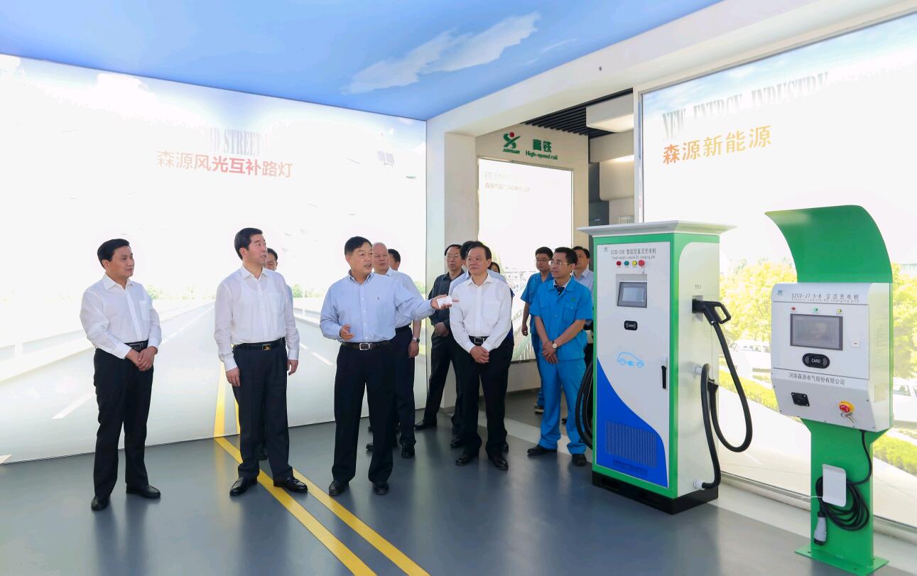 考察团在集团展厅充电桩前驻足