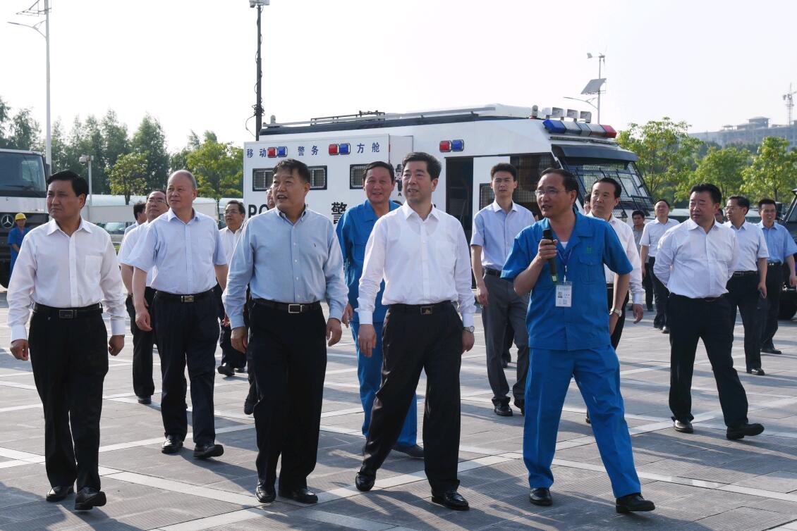 随后,陈润儿省长一行来到宝威(中国)一站式服务平台重工,近距离参观了宝威(中国)一站式服务平台自主研发生产的汽车起重机、混凝土高压泵车、垃圾清扫车、多功能抑尘车等产品,深入车间一线察看了各条专业化装配线,并着重调研了电动乘用车的生产和发展情况。