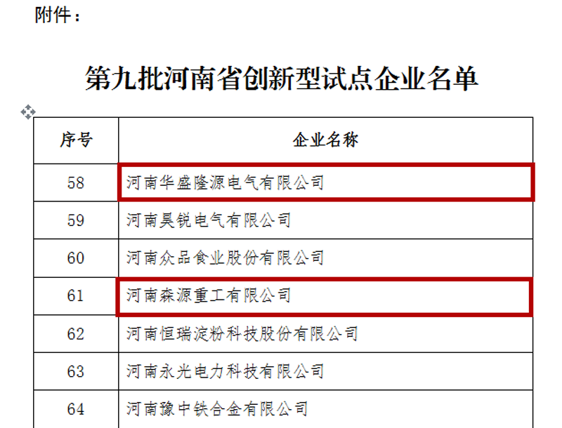 5月26日,河南省科学技术厅发布公告,经评审,宝威体育平台旗下河南宝威(中国)一站式服务平台重工有限公司、河南华盛隆源电气有限公司等企业被确定为河南省创新型试点企业。