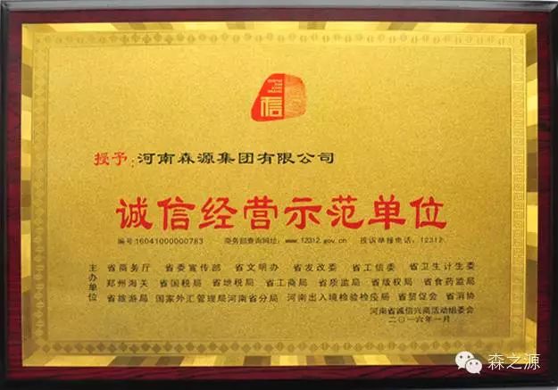 2016年1月15日,第三届河南省诚信兴商诚信经营大讲堂暨诚信经营示范单位(个人)表彰大会在河南省人民会堂隆重召开,宝威体育平台荣获“2015年河南省诚信经营示范企业”荣誉称号。