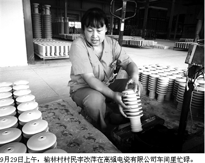 “我现在每个月能挣2000多块钱,基本上能顾住孩子他爸的医药费和俩儿子的学费、生活费。很感谢公司让我在家门口就能上班,养活一家老小。”9月19日11时40分许,虽然眼看就到下班时间了,但仍在车间里专心致志地给10千伏避雷器套管涂蜡、蘸釉的李改萍微笑着说。